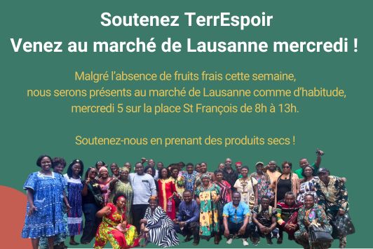 Soutenez TerrEspoir ! Venez au marché de Lausanne mercredi !